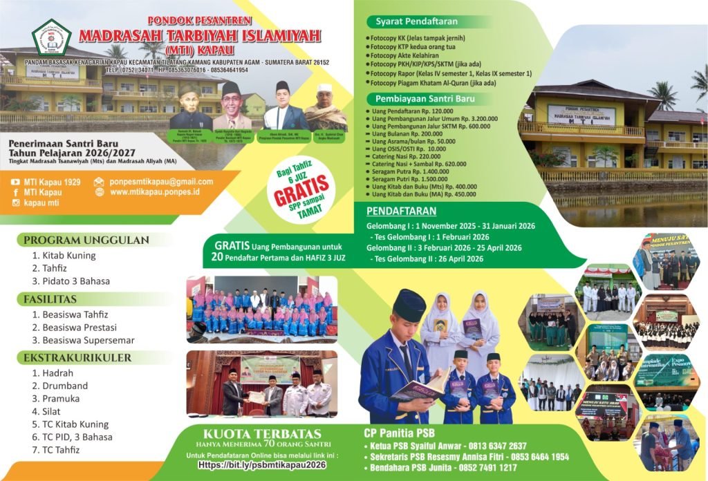 Panitia Penerimaan Santri Baru (PSB) Pondok Pesantren MTI Kapau Tahun Pelajaran 2026-2027