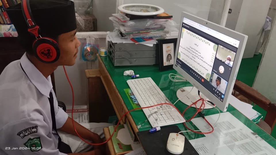 Faris Habibilhaq (Santri Kelas IX) mengikuti lomba Musabaqah Qiroatul Kutub (MQK) Fathul Qorib (Kitab Kuning) Tingkat Nasional yang diadakan oleh UNU-STAI Salahuddin Pasuruan dalam event Gebyar Miladiyah Qur’ani (GMQ)